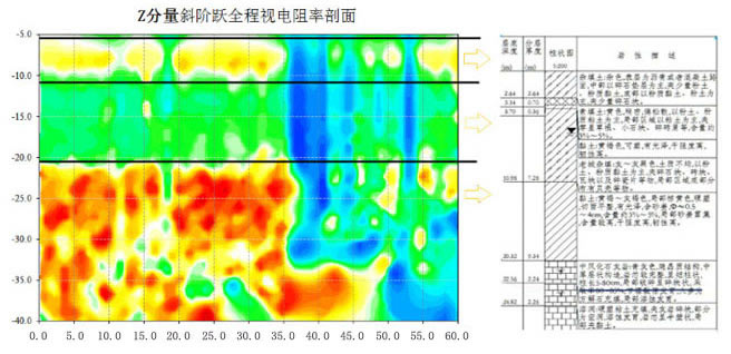 瞬變電磁Z分量視電阻率剖面與鉆孔柱