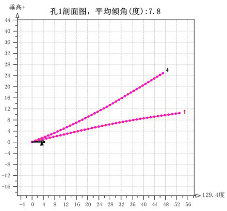 某集團(tuán)某礦鉆場(chǎng)雙探水孔在豎直面上的投影(單獨(dú)反映鉆孔的傾角)