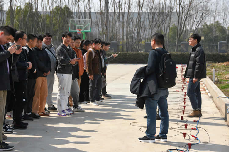 隨后,通過介紹我司的基本情況、物探技術(shù)服務(wù)、儀器設(shè)備以及現(xiàn)場參觀實(shí)驗(yàn)場地,讓學(xué)生對我司的技術(shù)及設(shè)備有了更直觀的認(rèn)識。
